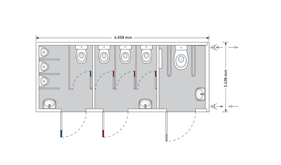 С този мултифункционален продукт вие ще покриете потребностите на всички дошли да уважат вашето събитие. Рампата, монтирана на контейнера, позволява безпрепятствения достъп на хора със специални нужди и на майки с малки деца в колички, като също така е съвместима и с резервоар за отпадна вода, който да бъде поставен под санитарния контейнер. Всяко отделение е снабдено с водоспестяващи фитинги, които спомагат както за опазване на околната среда, така и за намаляване на вашите разходи. Вграждането на водопровода го предпазва от повреди и спомага за по-лесното почистване на контейнера.